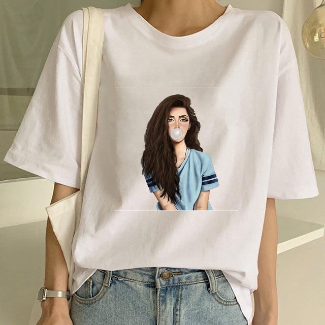 Ulzzang Women Clothes 2019 Streetwear Aesthetic Printing Beauty Girl 100 Cotton T Shirt Korean Style Shortsleeve